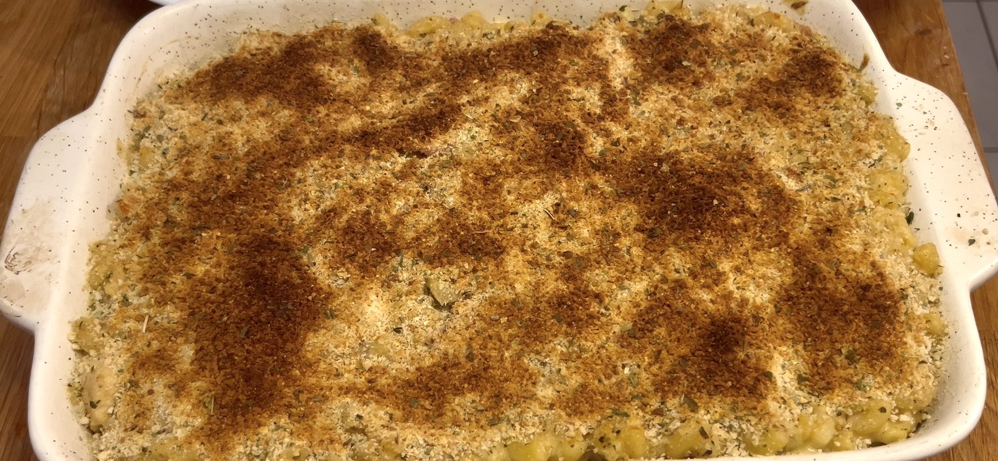 - Ajouter le fromage une poignée à la fois et mélanger jusqu’à ce qu’il soit complètement incorporé à la sauce. Ajouter le bacon, le poulet et les macaronis et mélanger en pliant. Déposer le tout dans un plat rectangle allant au four et saupoudrer la chapelure sur le dessus.