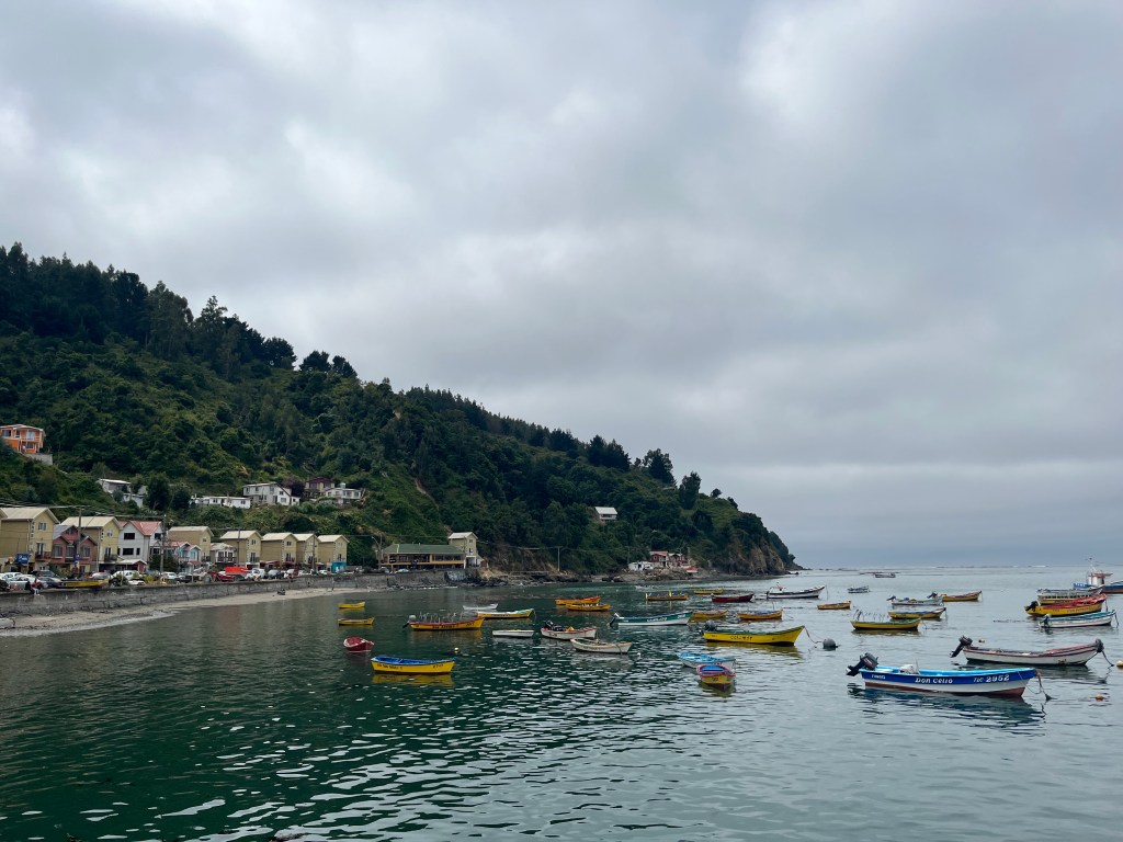 Ma ville favorite est définitivement Maicolpue. On est restés 4 jours là bas. Maicolpue est un petit village côtier dans la municipalité de San Juan de la Costa. On est arrivés ici le 10 janvier je crois après avoir passé la première semaine du voyage pas mal malade et à faire plein d’activités tous les jours, ça a fait du bien de venir dans cet havre de paix. On est resté dans la maison de plage d’un membre de la famille du père à mon copain. On avait une superbe belle vue. On a passé nos journées à prendre des marches, se faire bronzer, aller dans l’eau glaciale et surtout se détendre et profiter du calme de la ville. Des amis de la famille sont venus nous rejoindre et on a décidé de cuisiner du poisson sur le bbq pour eux. On s’est donc rendus au port de Bahia Mansa pour acheter des poissons.