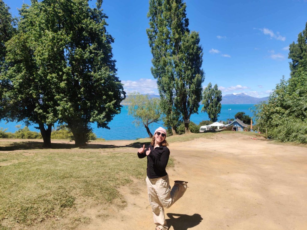On n’est pas vraiment resté à Puerto Tranquilo, mais on était quand même proche. C’est un petit village en patagonie avec des vues à couper le souffle. On est restés dans des cabanas: cabanas Piedra de Condores https://www.instagram.com/piedradecondores?igsh=MWlvdzljd3QzdTF5bw== les propriétaires étaient super gentils et il y avait des moutons, des vaches et des poules. On étaient entourés de montagnes, d’un magnifique lac et c’est un endroit très intimes puisqu’il y a plus de vaches que de maisons aux alentours.