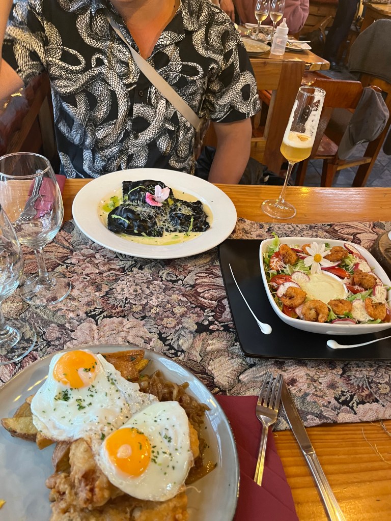 Puisqu’il n’y avait pas beaucoup de restaurants dans cette région, j’ai seulement deux suggestions: Las Parvas, un restaurant où on a mangé du Cordero. C’était plutôt cher, mais très bon et c’est un plat typique de la région. Et une panaderia où on a mangé les meilleurs kuchen que j’ai mangé de ma vie, mais je ne me souviens plus comment ça s’appelle, mais il n’y en a pas beaucoup donc vous allez certainement la trouvé.